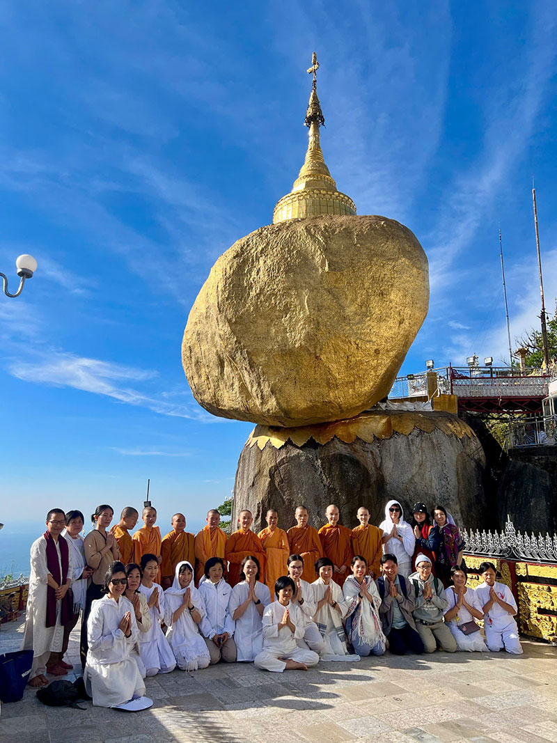 Giữa những buổi pháp đàm và cúng dường, đoàn còn được chiêm bái thánh tích nơi diễn ra kỳ Kết tập Kinh điển lần thứ VI, chiêm bái tháp Shwedagon sừng sững vàng óng trong nắng chiều và hòn đá thiêng Golden Rock vững chãi như niềm tin của hàng Phật tử tín tâm. Các trung tâm thiền– từ Dhamma Joti tại Yangon đến nơi tu hành của ngài Saya Thet Gyi – mở ra cho đoàn hiểu thêm về lịch sử truyền thừa Vipassanā và công hạnh của những bậc Thầy Tổ đã giữ gìn dòng thiền minh sát tuệ để cho thế hệ ngày nay có cơ hội gột rửa thâm – tâm.